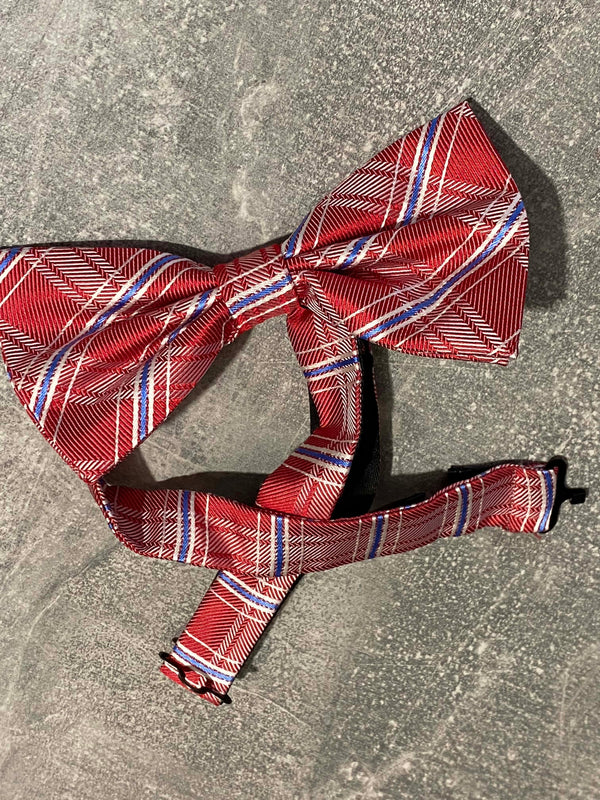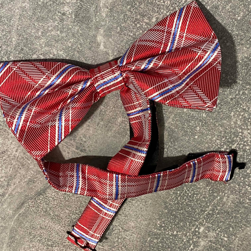 Diese edle Bugatti Herrenfliege in kräftigem Rot kombiniert ein markantes Karomuster mit feinen, kontrastierenden Linien in Weiß und Blau – perfekt für besondere Anlässe, Hochzeiten, Abendveranstaltungen oder moderne Business-Looks.Gefertigt aus 100 % Seide, überzeugt sie durch einen hochwertigen Glanz, eine angenehme Haptik und ein erstklassiges Tragegefühl.Die Fliege ist neu, ungetragen, verstellbar und lässt sich schnell und komfortabel schließen.