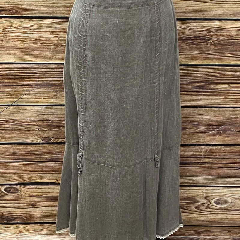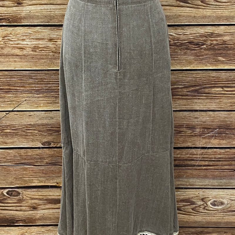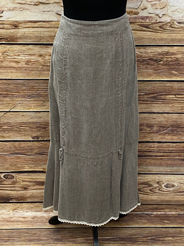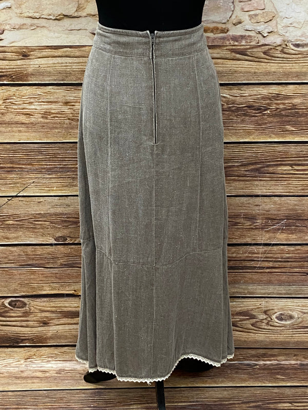 Verleihe deinem Trachtenstil eine unkonventionelle Note mit unserem einzigartigen Damen Jeans-Trachtenrock von Landhaus. Gefertigt aus 100% Leinen in einem attraktiven grünlich-braunen Ton, kombiniert dieser Rock traditionellen Landhausstil mit einem modernen Twist. Die feine Lochspitze am Saum fügt eine zarte Eleganz hinzu, die perfekt für Volksfeste, Freiluftveranstaltungen oder als besonderer Hingucker in deiner Alltagsgarderobe ist.