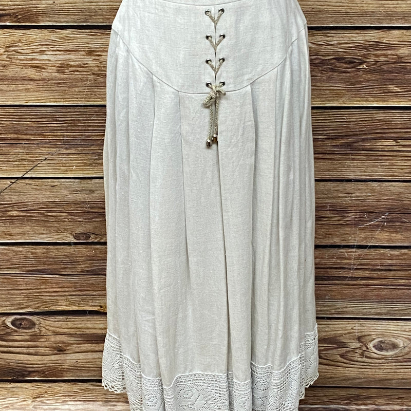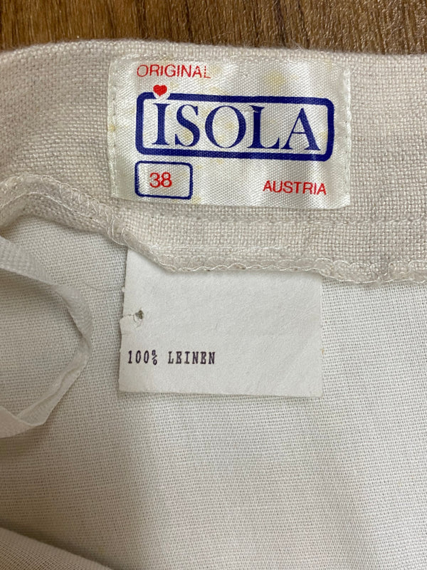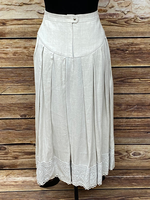 Verleihe deinem Trachten-Outfit eine elegante Note mit unserem Damen Trachtenrock von Isola. Gefertigt in Österreich aus einem hochwertigen Leinen-Mischgewebe, präsentiert sich dieser Rock in einem sanften Beige mit naturfarbenen Nuancen. Die feine Klöppelspitze am Rocksaum und die stilvolle Kordel vorn verleihen ihm eine besonders exquisite Ausstrahlung.
