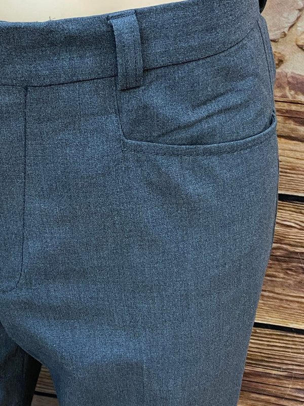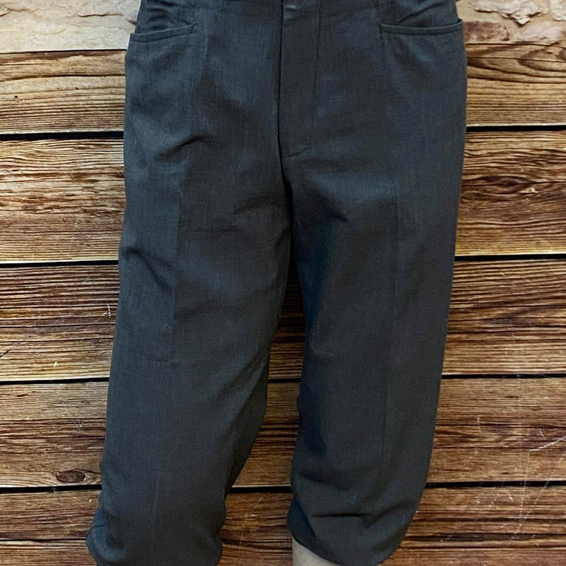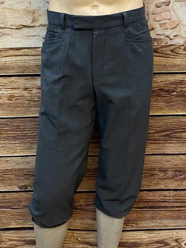 Typisch für Knickerbocker endet das Hosenbein unterhalb des Knies und ist leicht gerafft. Die Hose besitzt seitliche Eingrifftaschen, Gürtelschlaufen und eine schlichte Front ohne Bundfalten – was ihr einen etwas moderneren, schmaleren Look verleiht.