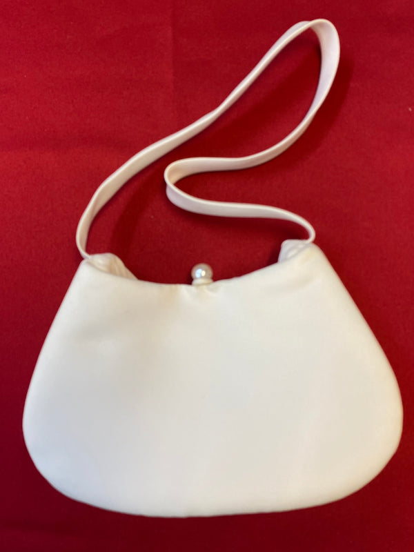 Ein besonderes Detail ist der kleine Perlenverschluss, der der Tasche eine elegante und festliche Optik verleiht. Der lange Schulterriemen ermöglicht es, die Tasche bequem über der Schulter zu tragen.