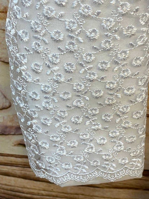Ideal kombinierbar mit weißen Ballerinas, einer kleinen Festtags-Handtasche und zartem Haarschmuck wie Blumenkranz oder Perlenhaarband.