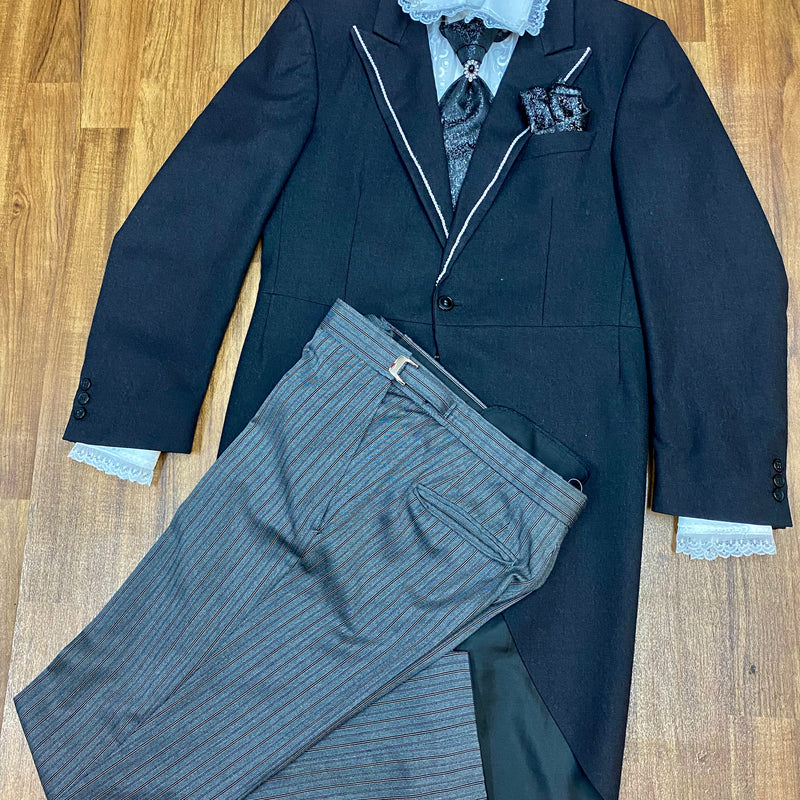 Hochwertiges, handveredeltes Steampunk-Outfit im viktorianisch-barocken Stil. Dieses Ensemble kombiniert echte Vintage-Teile aus Schurwolle mit neuen, maßlich abgestimmten Elementen. Ein elegantes Unikat für Steampunk-Events, Hochzeiten, Shows oder Sammler – kein zweites Exemplar vorhanden.