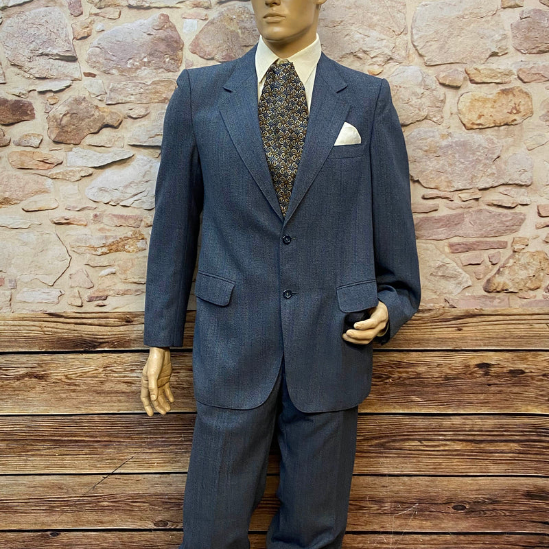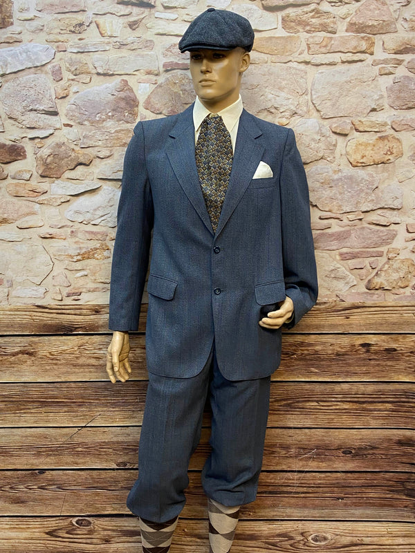 Tauche mit diesem authentischen Vintage-Outfit in den Charme der 1920er Jahre ein! Der elegante Anzug im Gatsby- und Peaky-Blinders-Stil verleiht dir sofort den Look der goldenen Zwanziger. Das Ensemble besteht aus einem graublauen Sakko, einer passenden Knickerbockerhose, einem Hemd (Gr. 40), einer Paisley-Seidenkrawatte von Westbury, neuen Kniestrümpfen, einem Einstecktuch und einer Schiebermütze (Gr. 59).Die hochwertige Wollmischung sorgt für angenehmen Tragekomfort und klassische Struktur – perfekt für Vintage-Partys, Themenabende oder elegante Herbstlooks.