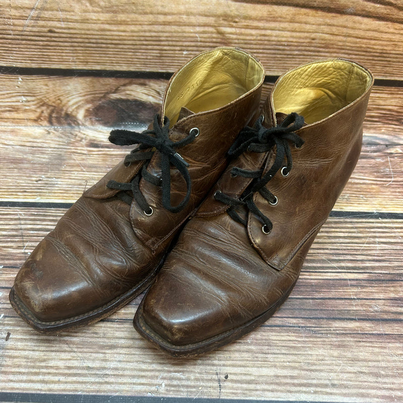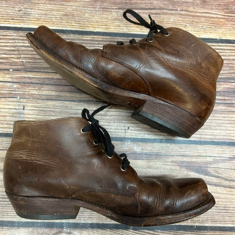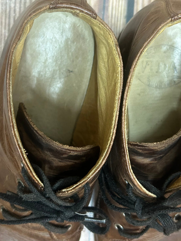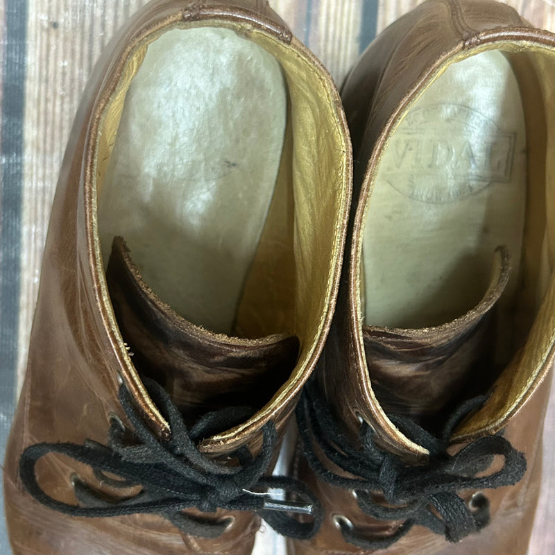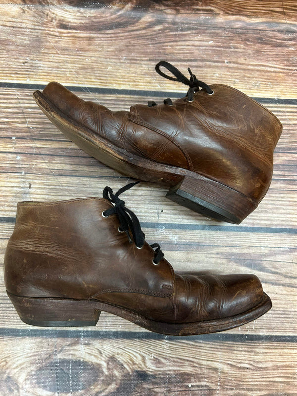 Authentische, knöchelhohe Vintage-Schnürstiefeletten aus braunem Leder (Gr. 37) mit schöner Patina, Ledersohle und stabilem Fersenabsatz – perfekt für Retro-Outfits, Theater & Fotoshootings. Der klassische Derby-Schnitt mit leicht eckiger Kappe wirkt zeitlos und passt zu Marlenehose, Tweedrock oder Jeans. Ideal für Oldtimer-Treffen, Swing-Abende oder historische Events – wertet jedes Outfit mit echtem Vintage-Charme auf.
