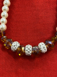Farbe: Cremeweiß (Perlen) / Goldfarben (Verschluss) / Klare Kristallakzente