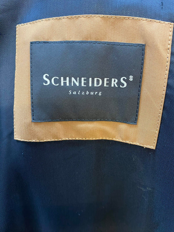 Dieser hochwertige Vintage-Wollmantel von Schneiders Salzburg steht für klassische Eleganz und feinste Verarbeitung „Made in Austria“. Der Mantel besticht durch seine klare Silhouette, den dezenten Umlegekragen und das luxuriöse Innenfutter mit farblich abgesetzten Paspeln. Gefertigt aus 100 % Schurwolle sorgt er für exzellenten Tragekomfort und zeitlosen Stil – ideal für Business, Alltag oder festliche Anlässe.